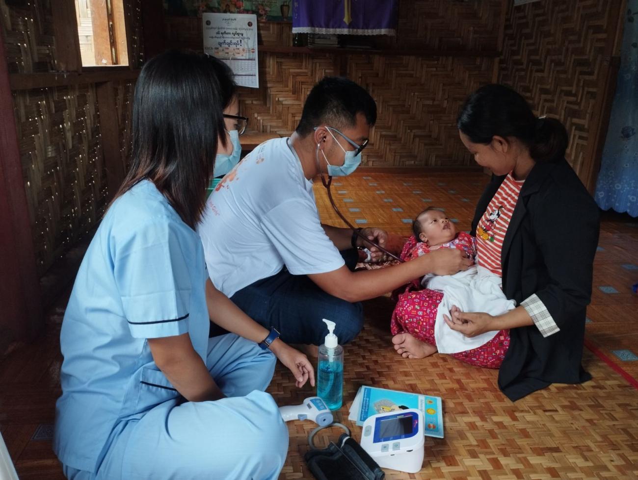 Dr. Mung, a local leader originally from Myitkyina, is intimately familiar with the difficult operational context in Kachin State. As a Mobile Medical Team Leader with the Myanmar Medical Association (MMA) since 2019, he works across challenging environments - especially the IDP camps and solution sites. In situations where families are displaced and face obstacles such as low literacy rates and restricted access to vital information, there can be dangerous delays in receiving life-saving care.